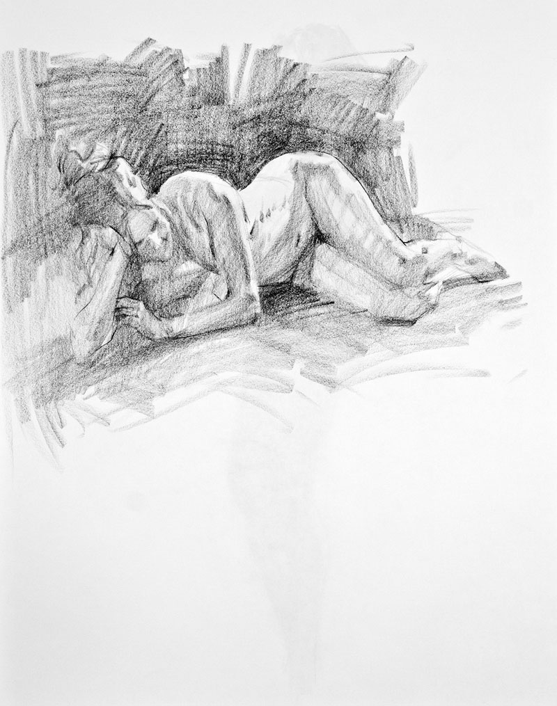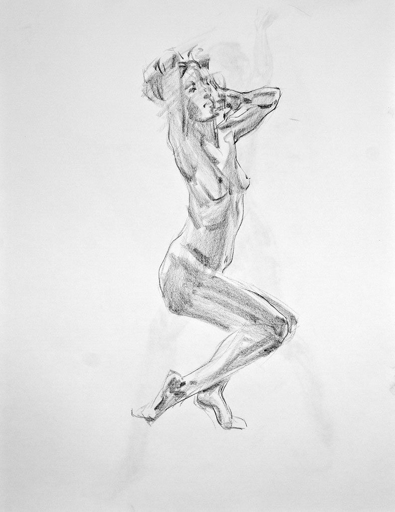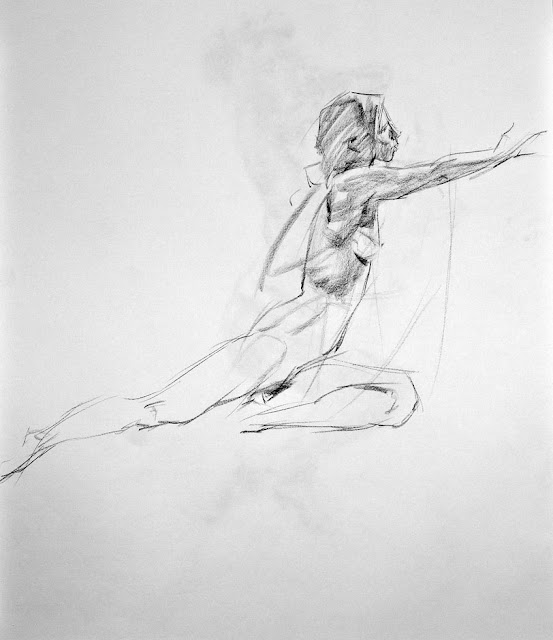 This is a tough position to draw. It's harder than it looks. Trying to draw it as I saw it didn't look quite right. I had to "lipo" some areas of her figure.