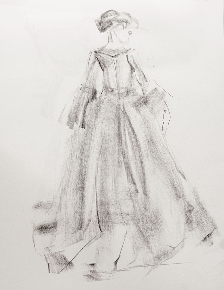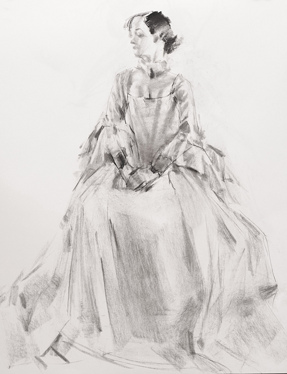These were done in 2-minute intervals. Seems like a tough subject to tackle right? The trade-off between the complexity of the fabric is the simplicity you can take advantage of by not having to draw legs and feet.