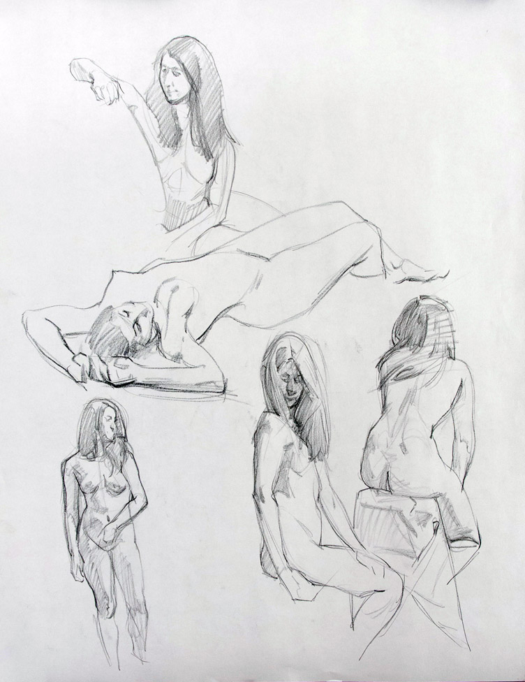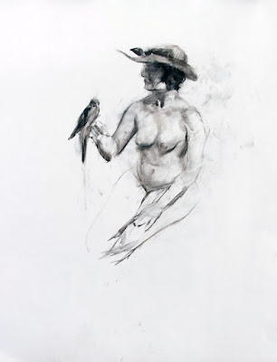 This model had a parrot with her, which was much more interesting to draw than she was.