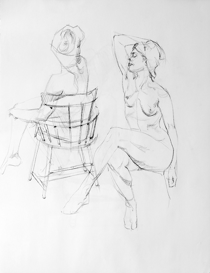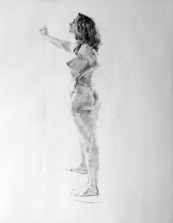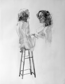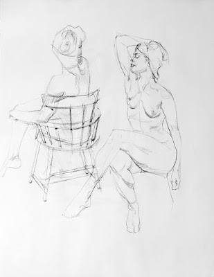 But back to the fun stuff.These next five drawings were the last ones I did in the old drawing studio at the Sebastopol Center For The Arts on Depot Street. That room was the worst; it would get way too hot in there even on cold nights. Had terrible air circulation. Not enough in-front parking either. There were a lot of things that got in the way of the view of the models too, like big concrete beams holding the roof up. The new place is more open, though slightly smaller in terms of space, but I think it's better.